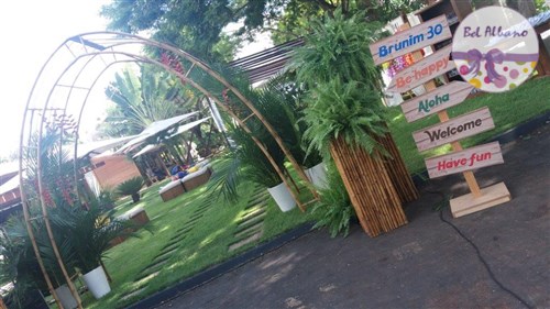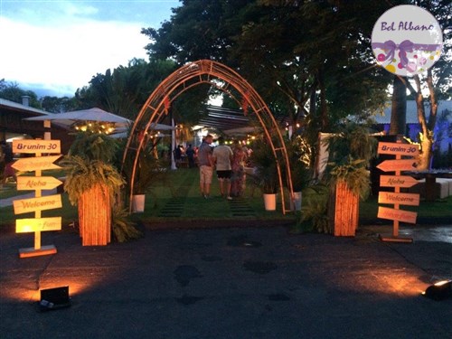 Brunin reuniu familiares e amigos na fazenda para comemorar seus 30 anos. Uma festa hawaiana cuidada nos mínimos detalhes.