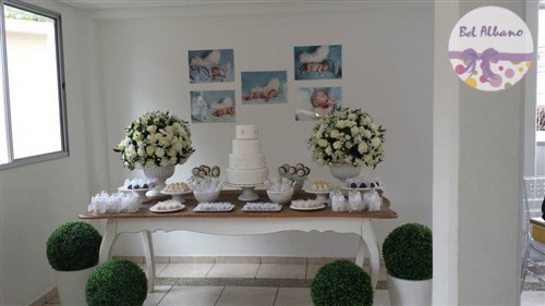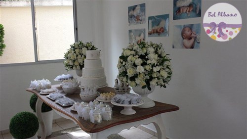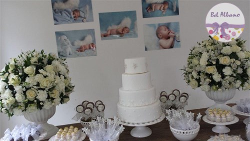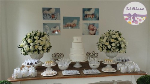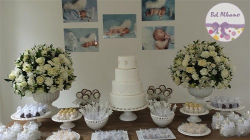 Mateus celebrou seu batizado em meio aos anjos e sua família. Uma decoração suave onde se destacavam as fotos deste anjinho.