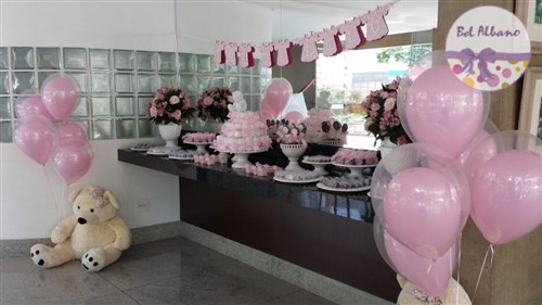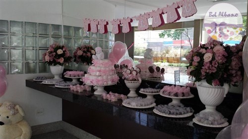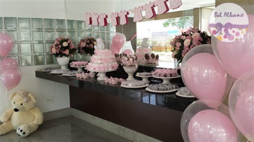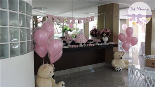 Para preparar a chegada da Lulu, papai e mamãe reuniram familiares e amigos próximos em um chá de bebê dcorado com as ursinhas rosa.
