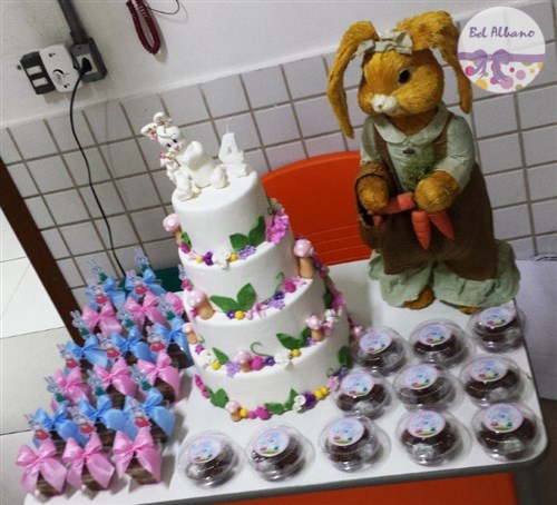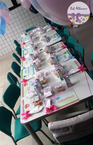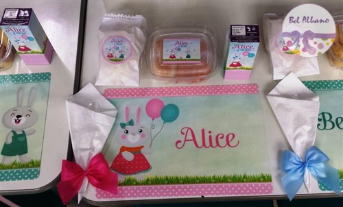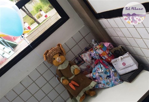 Alice comemorou seu aniversário na escola com uma linda decoração de coelhinhos.