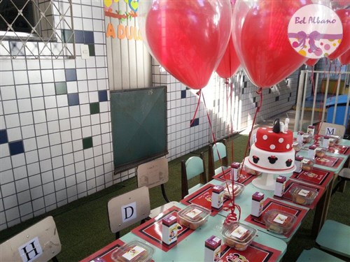Minnie Vermelha na escola para os 2 anos da Laurinha