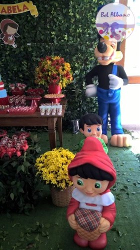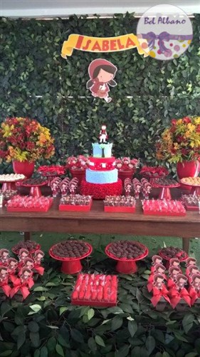 Enquanto chapeuzinho colhia flores pela floresta, Bel Albano e sua equipe prepararam uma linda festa para o aniversário de Isabela, com direito a ilustre presença do Lobo Mau.