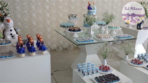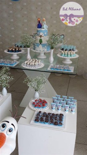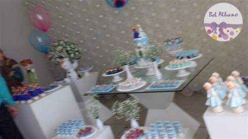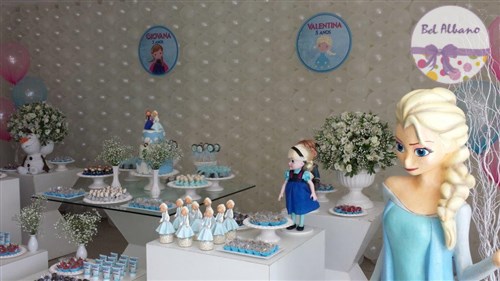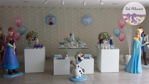Mais uma festa infantil no tema Frozen para celebrar o aniversário das irmãs Giovana e Valentina.