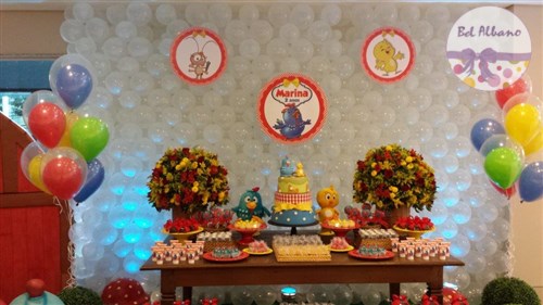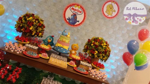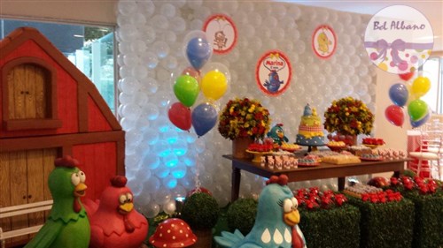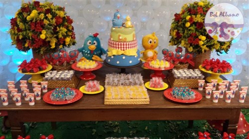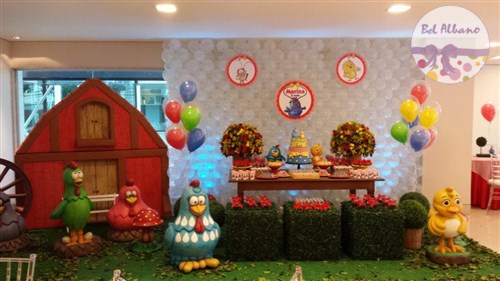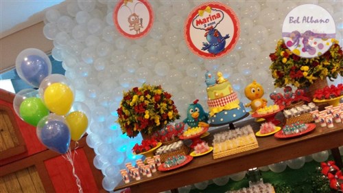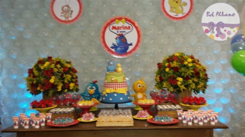 Marina comemorou seu segundo aniversário com uma festa decorada no tema Galinha Pintadinha.