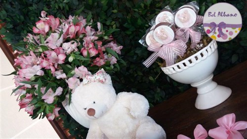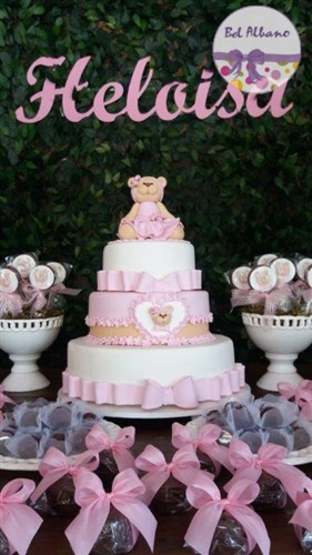 Heloísa amou as ursinhas florais que vieram alegrar seu primeiro aniversário