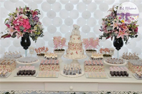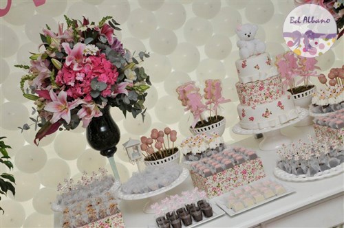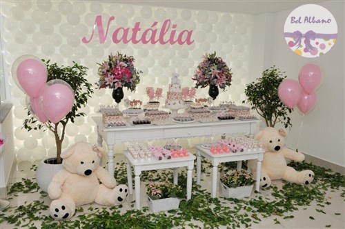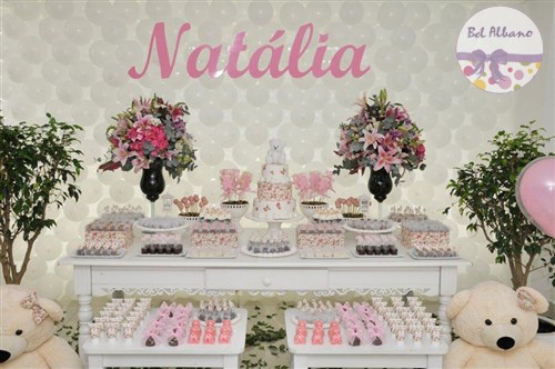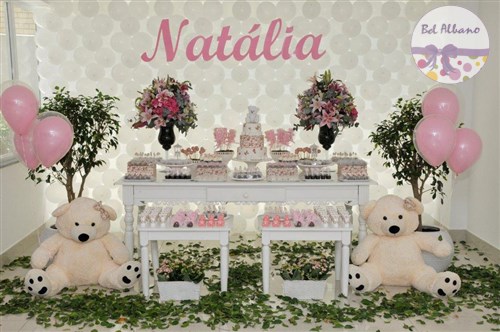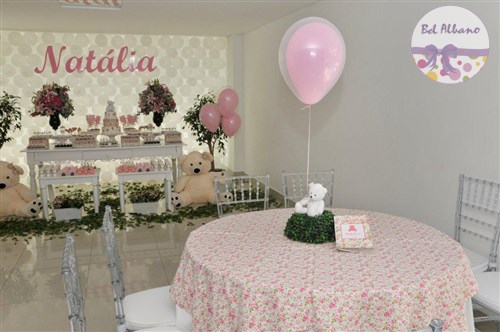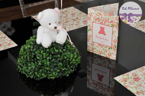 Uma linda festa decorada com as ursinhas floral. Foi assim que a Natália comemorou seu primeiro aniversário,