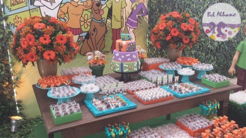 É muito legal fazer uma festa para comemorar o aniversário de mãe e filho. Melhor ainda quando o tema escolhido é um desenho que a meninada adora e que fez parte da infância de vários pais. A mamãe Fernanda e o Bernardo escolheram o tema Scooby Doo para comemorar mais um ano de vida. A festa foi preparada com muito carinho com direito a pista de dança para a mamãe e buffet de comida japonesa para o Bê.