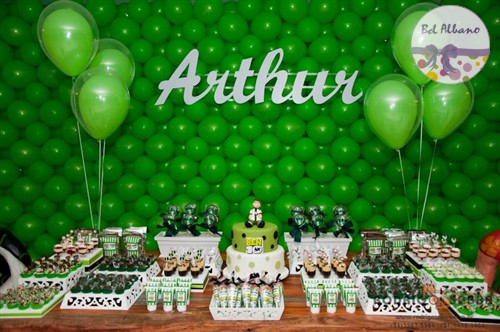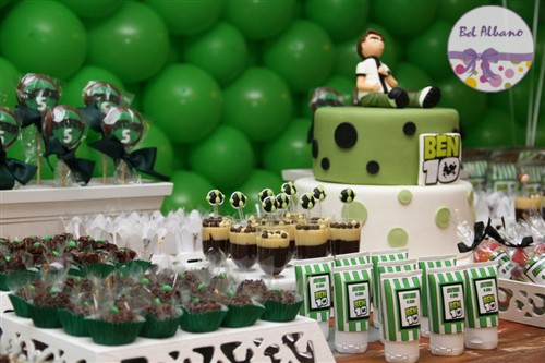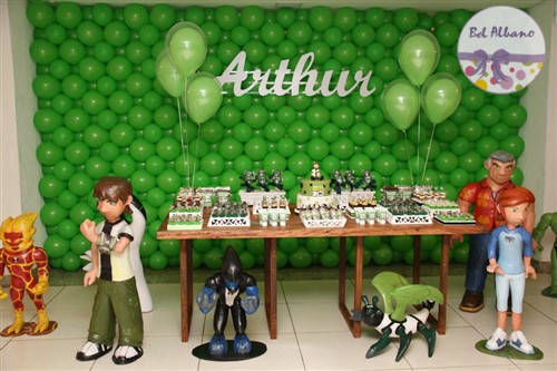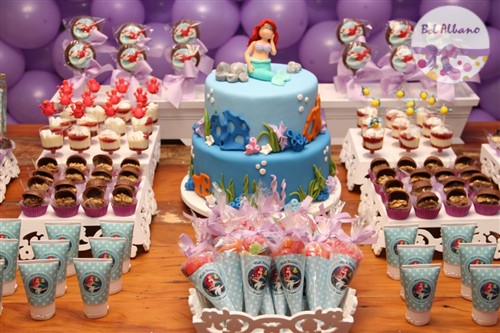 Linda combinação de temas para uma festa espetacular: Ben 10 para Arthur e Ariel para Fernanda.